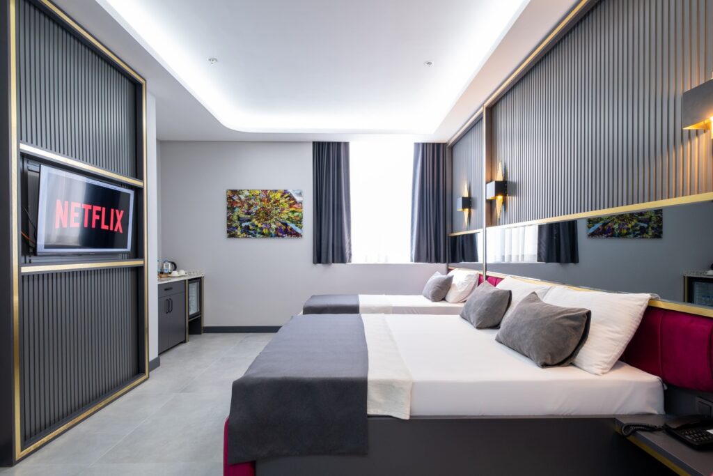 Twin Oda Oda Özellikleri LCD TV KAHVALTI ÜCRETSİZ PARK WI-FI KİLİTLİ KASA 1 adet çift kişilik geniş yatak Laptop sığabilen ölçülerde güvenlik kasası 1000 uydu kanallı LCD TV Kettle & çay-kahve ikramı Yüksek hızda ücretsiz kablolu & kablosuz internet Küvet-duş, saç kurutma makinesi ve banyo telefonu
